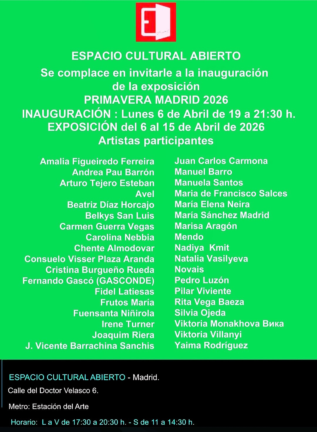 PRÓXIMA EXPOSICIÓN ‘PRIMAVERA MADRID 2026’ – Obra seleccionada ‘Lady in Red’ – EXPACIO CULTURAL ABIERTO, Madrid – 6 al 19 abril 2026